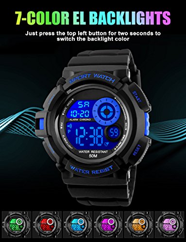 7 Fshion color Led Backlight: 7 color bright LED back lights (Just press top left button for two seconds to change) makes time reading super easy and fun.Its fashion look make it perfect for all kind of sport and daily use.