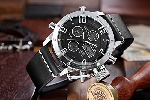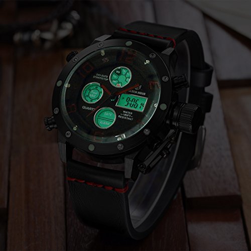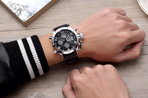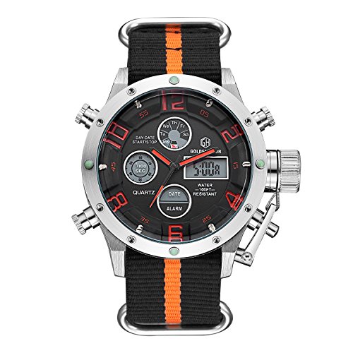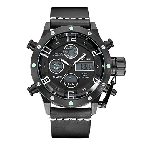 Multi-Function Large Dial Military Style Watch with Alarm,Stopwatch,Backlight,Date and Day,24 hours Display ,IP Plating Case Never fade away.