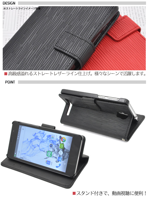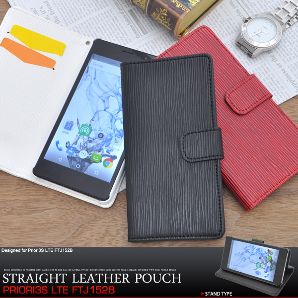 ストレートレザーデザインのPriori3S LTE FTJ152B用スタンドケースポーチ。