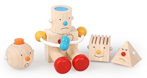 -. Feature : Build-A-Robot features four interchangeable heads, which teach emotions and offer different tactile and auditory experiences / Arms and Legs are movable to develop fine motor skills / Under the Green Concept Design PlanToys manufacturers utilizing a minimal waste concept / PlanToys long-term commitment to social programs promotes healthy child development and environmental protection / All PlanToys are made using chemical free, kiln-dried recycled rubberwood and designed with water based non-toxic colors as accent