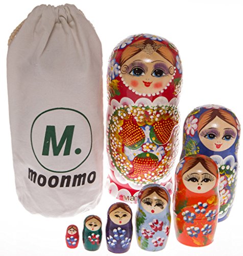 -. Feature : ★These 7 dolls are of different size and the color combination is applied perfectly to match them together. The multicolored dolls go with every type of background color, so stop worrying about the mismatch / ★These dolls are made up of basswood which is the perfect material for this kind of product. The high quality and sturdy wooden dolls are more durable than the cheap ones available in the market / ★The package includes 7 pieces of exciting colorful Russian dolls that will be perfect in rooms of every color. This is very easy to use and do not take much space according to the size, and packed with environmental friendly, cotton drawstring bag / ★These dolls are traditional Russian work of art. These nesting dolls were carved from a single piece of wood and later they were broken down into pieces. They were hand painted very carefully by the finest workers of the market / ★These attractive Russian dolls are not just for looks. These are very useful and practical as well. You can keep you candies, jewelry etc in them according to your needs. Finding your jewelry at the last moment will never be so easy. For more different kinds of nesting dolls with different pieces and patterns, welcome to visit our store Moonmo.
