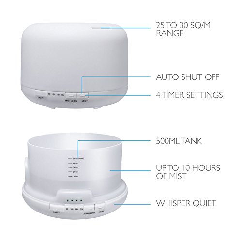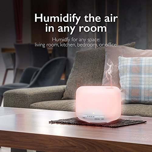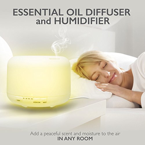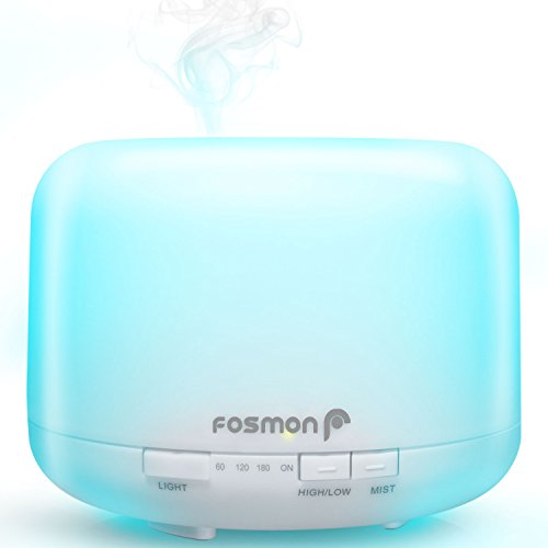 Essential Oil Diffuser Humidifier, Fosmon Ultrasonic 500mL/16.9oz Large Essential Oil Aroma Diffuser Cool-Mist Humidifier with 7 LED Mood and 4 Timer Setting for Bedroom, Therapy, Office, Home & More