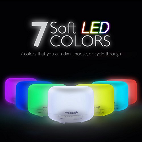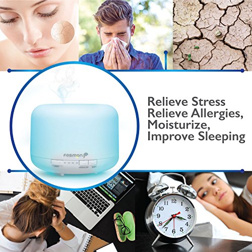 - [SIMPLE AND STYLISH DESIGN] Fosmon’s ultrasonic humidifier / diffuser is a stylish way to achieve the benefits from using essential oils and humidifying your room. Excellent for at home or in office / workplace environments. The stylish design goes with any decor. Helps to aid in stress relief, relaxation, balance, well-being, mood enhancement, relief from minor discomforts, and boosting the respiratory, circulatory and immune systems