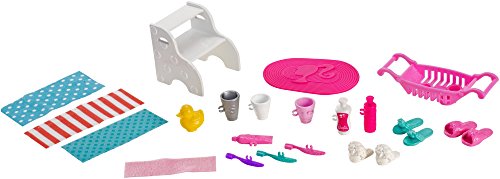 Kids can help Barbie and her sister Chelsea prepare for day or night with this signature style bathroom playset!
