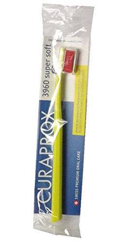 -. Binding : Misc. -. Brand : Curaprox -. EAN : 0744750546028 -. Feature : Soft and Gentle Nylon Fibers Patented by Curena / Non Traumatic to the Gums with High Density Fibers / Small Compact and Slightly Oblique Brush Head That Allows Easy Access / Octagonal Handle for Better Holding in the Right Angle / Designed and Made in Switzerland by Curaden (Since 1972) -. IsAdultProduct : 0 -. Label : Curaden -. Manufacturer : Curaden -. Model : 3960 -. MPN : 73314452 -. PackageQuantity : 1 -. PartNumber : 73314452 -. ProductGroup : Beauty -. ProductTypeName : BEAUTY -. Publisher : Curaden -. Studio : Curaden -. Title : Curaprox Swiss 3960 Super Soft Toothbrush 0.12mm Assorted Colors -. UPC : 744750546028