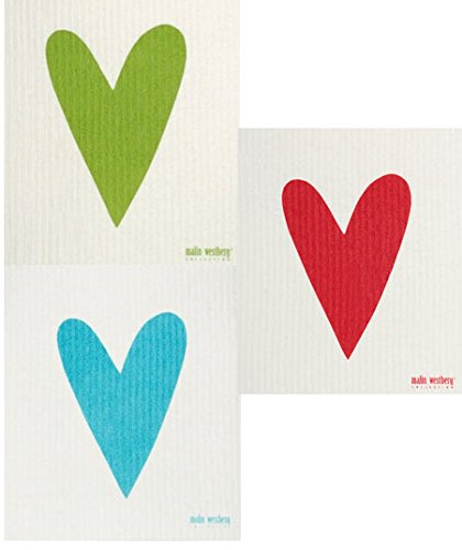 Swedish Dishcloth, Red & Dark Turquoise - Set of 3 All HEART (HA) Designs