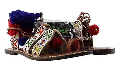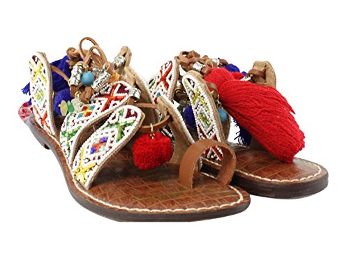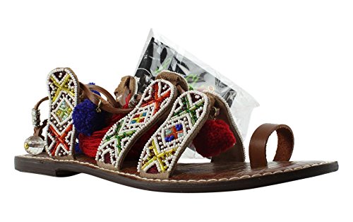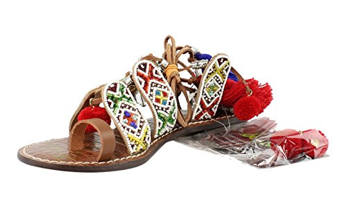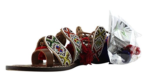 Product DescriptionBeaded lace up gladiator sandal with pom pom and charm embellishments and tassles0
