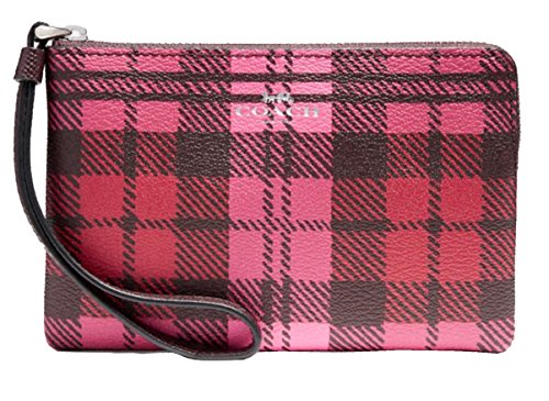 Coach Shadow Plaid Corner Zip Wristlet, Pink/Red