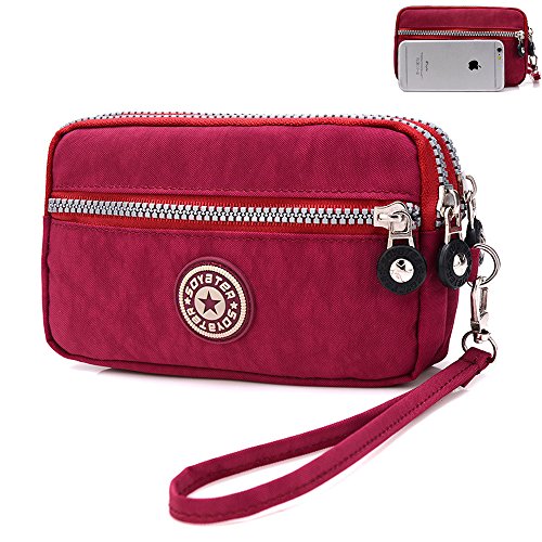 Product Description Specifications: - Made of practical, waterproof,lightweight,superior Nylon fabric, highly durable and stylish. - It is suitable for all kind of ages, such as teenage girlswomen; college students,teens,mother - This bag provides enough capacity for daily carryings including cell phones,cash,credit cards,small cosmetics and other staffs. - Daul layers design for better organizing your stuffs. - It is suitable for wristlet handbag. -Compatibilities:it fits for Apple iPhone 6s Plus,6 plus,Iphone 6/6s/5s,Samsung Galaxy S6/S5,Note 5/Note 4,HTC,LG G4 and any cell phones less than 6 inch. - The waterproof nylon bag keep up with your daily activities,super convenient. - Occasions:Casual,walking,shopping and everyday use. - Dimension: 7.1 inch(L)*1.6 inch(W)*4.3 inch(H);