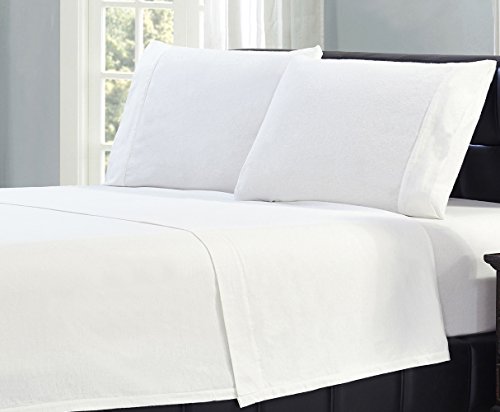 Mellanni 100% Cotton 1 Piece Flannel Fitted Sheet - Deep Pocket - Warm - Super Soft - Breathable Bedding (Queen, White)