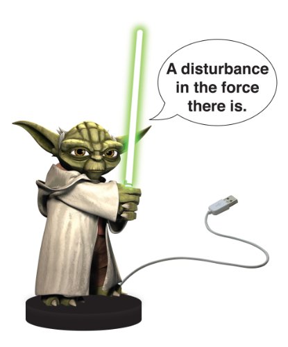 -. Feature : USB Powered / Simply Plug And Play / Six Yoda Phrases / Lightsaber Illuminates / Yoda Stands 6" Tall With Base