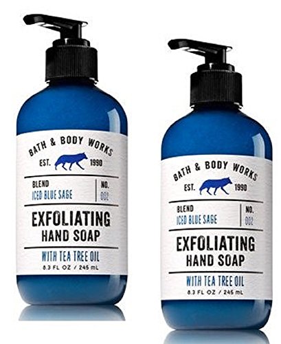 -. Binding : Misc. -. Brand : Bath & Body Works -. EAN : 0754185348272 -. Feature : 2 Pack Exfoliating hand soap Iced Blue Sage 8.3 Oz / A cool-as-ice blend of Blue Sage, White Pepper & Evergreen Musk. / This hand soap is specially formulated with pumice, keeping hands feeling silky, smooth and clean in just one step. / Wash away dirt and germs, while soothing Aloe and nourishing Vitamin E leave hands feeling soft. / Hand Soap with Tea Tree Oil. -. IsAdultProduct : 0 -. Label : Bath and Body Works -. Manufacturer : Bath and Body Works -. MPN : 0754185348272 -. PartNumber : 0754185348272 -. ProductGroup : Beauty -. ProductTypeName : BEAUTY -. Publisher : Bath and Body Works -. Size : 8.3 Ounces -. Studio : Bath and Body Works -. Title : Bath and Body Works 2 Pack Iced Blue Sage Exfoliating Hand Soap. 8.3 Oz. -. UPC : 754185348272