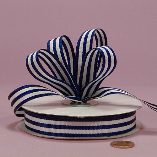 Navy Jenna Striped Grosgrain Ribbon, 5/8" X 25Yd