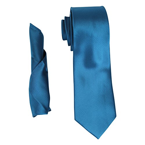 | AZAR Mens Solid Color Neck Tie 2.75" Wide Hanky Pocket Square Set Medium Width 7CM |