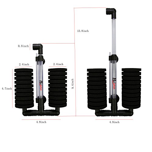 Huijukon Air Pump Double Sponge Filter for Aquarium Fish Tank Up to 55 Gallons