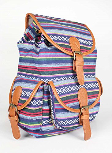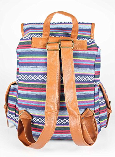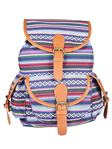 Cfanny Women's Stripes Navajo Aztec Pattern Buckle Flap Backpack,Blue,One Size