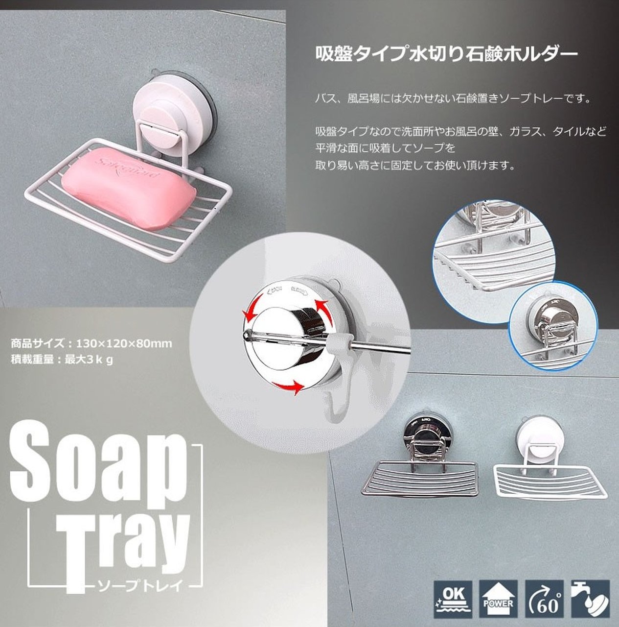 [Not fall shift in the vacuum suction] strong sucker bath for soap tray soap holder bath products draining toilet Bathing wall glass tile (Silver)