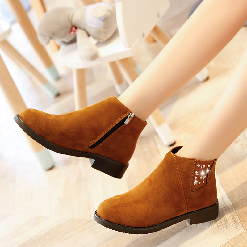 新款冬季马丁靴铆钉机车靴粗跟短靴女英伦风学生中跟裸靴女靴