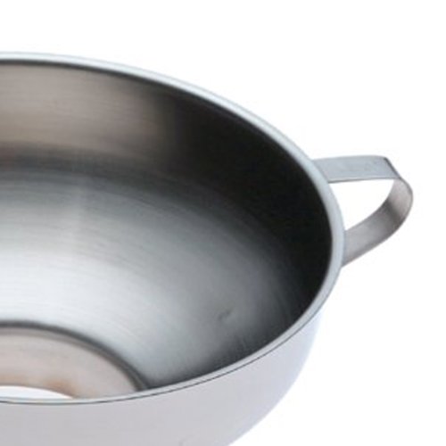 - This high quality stainless steel funnel can transfer both liquids and solids between containers. It's wide mouth is large enough for sugar, flour, and grains like rice to flow through. A big helper in the kitchen!