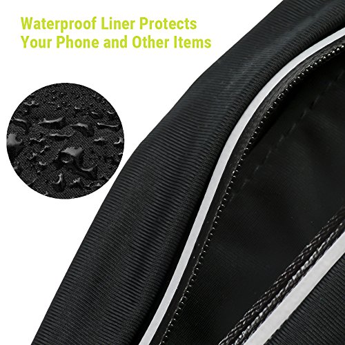 Waterproof Running Belt Waist Pack, Bounce Free Weather Resistant Pouch Expands to Carry Cell Phone with Case, Keys, Fuel, Wallet and Other Items, Water Resistant Zipper and Headphone Grommet