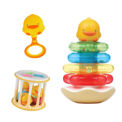 -. Title : Best Duckling Toy Collection Gift Set of Stacker,Rattle and Rolling Barrel