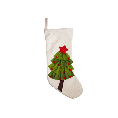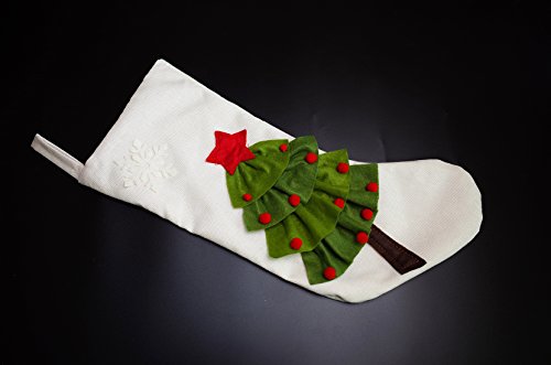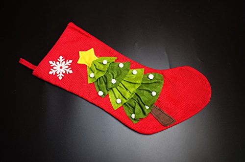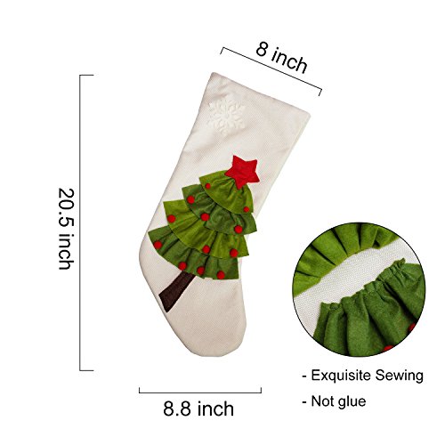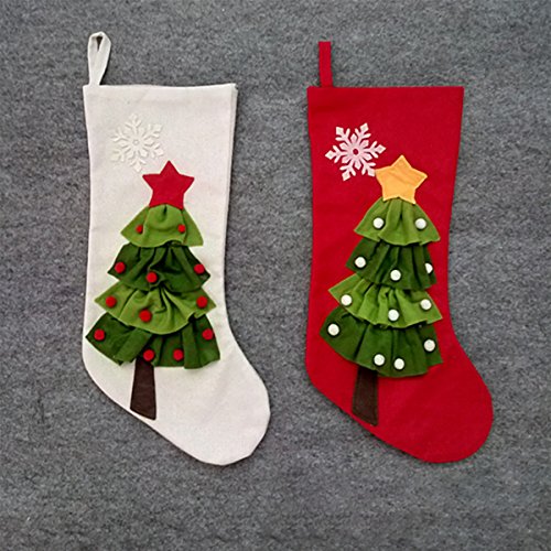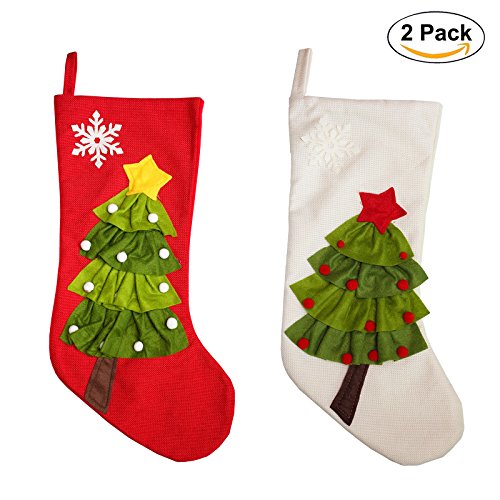 Set of 2 - 20 inch Burlap Christmas Stockings With 3D Christmas Tree Pattern for Christmas Decor - Red, White