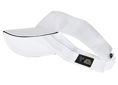 #9971Description : This easily adjustable visor is perfect for going on a run or just running some errands. The fold down sweatband makes adding embellishments a snap and the 100% polyester wicking fabric technology won't fade or stain while keeping you comfortable and dry all day. Made to work for you, the ATHLETIC MESH VISOR keeps the sun and sweat out so you can relax and enjoy the day.