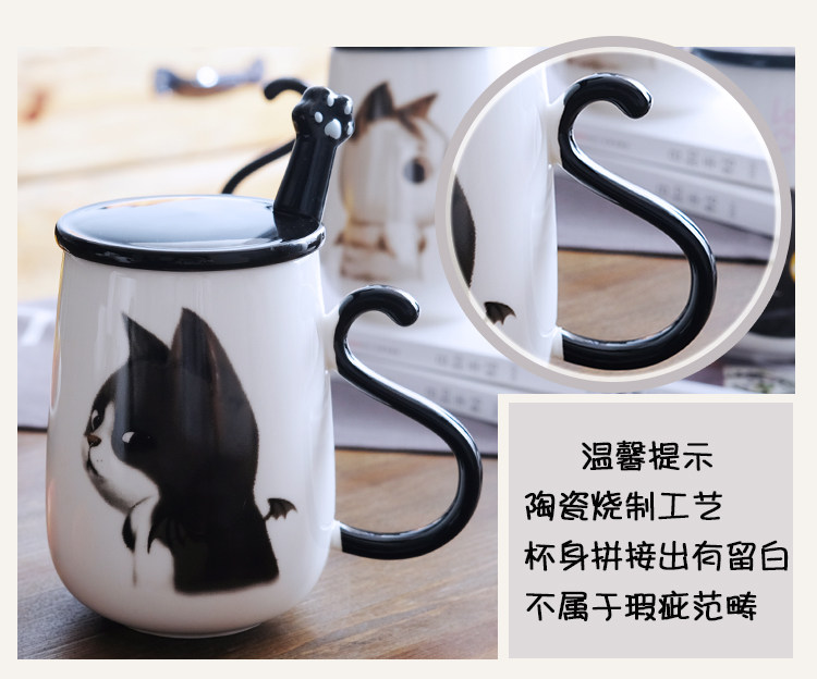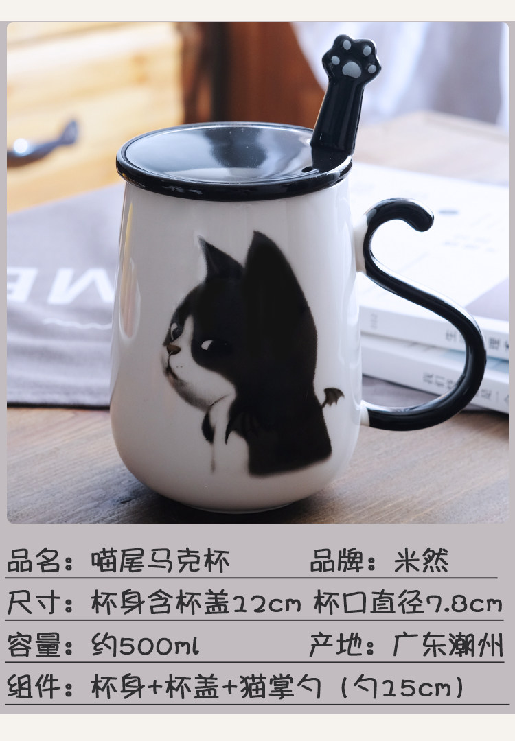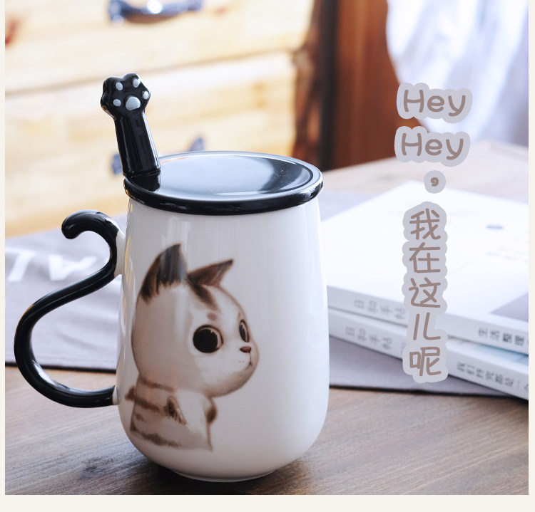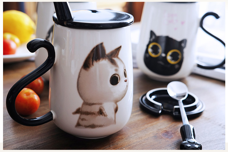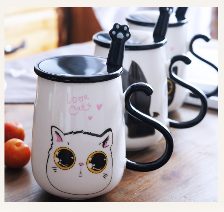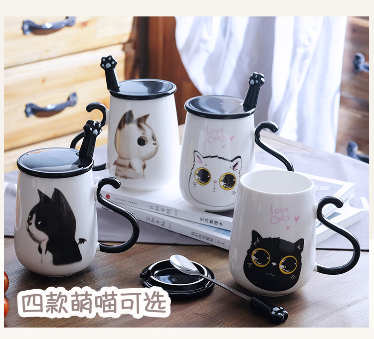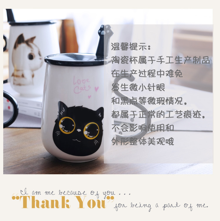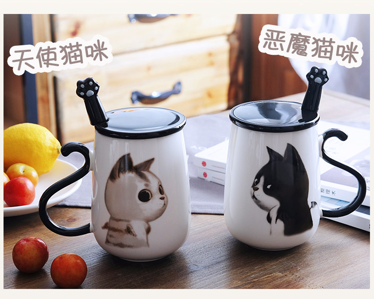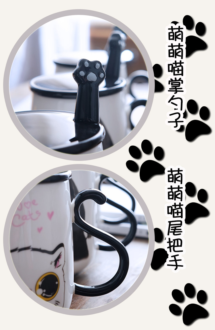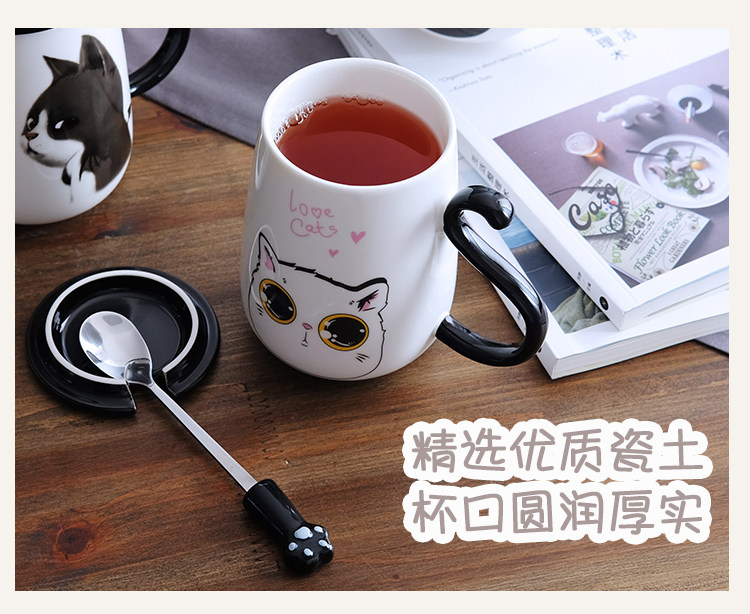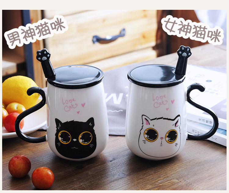 情侣猫咪马克杯大容量办公室陶瓷杯子带盖带勺创意学生咖啡牛奶杯