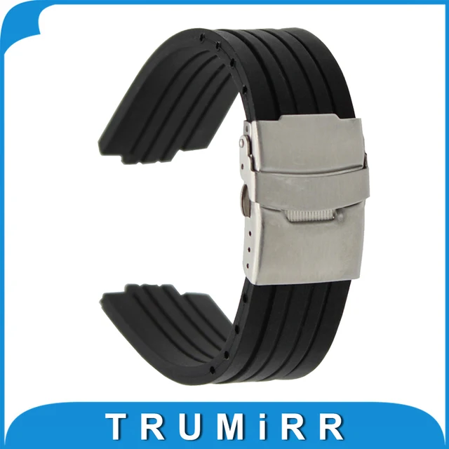 | [해외] 12 미리메터 x 22 미리메터 볼록 입 시계 밴드 실리콘 고무 손목 스테인레스 안전 버클 스트랩 손목 벨트 팔찌 + 봄 바 |
