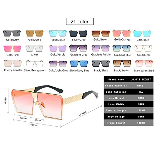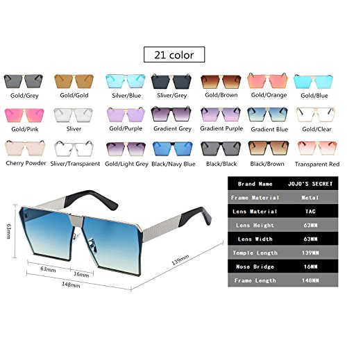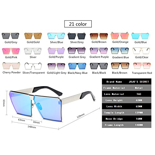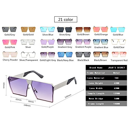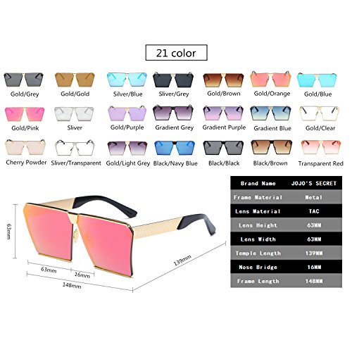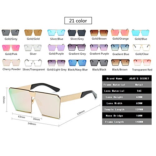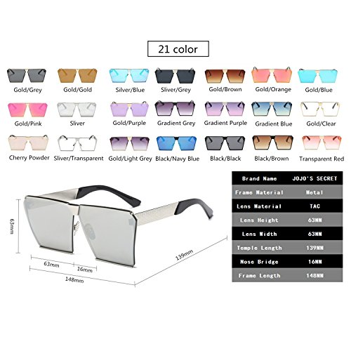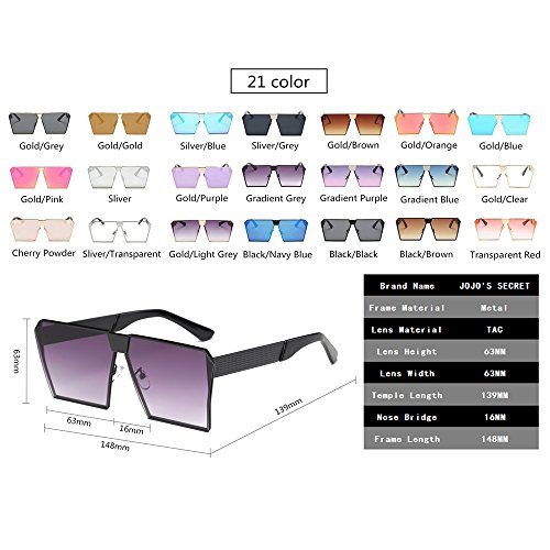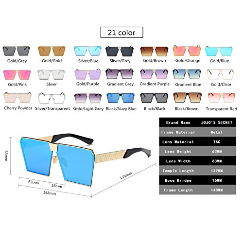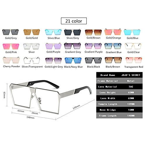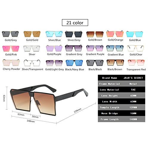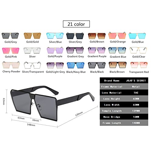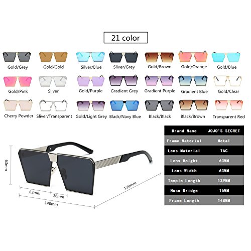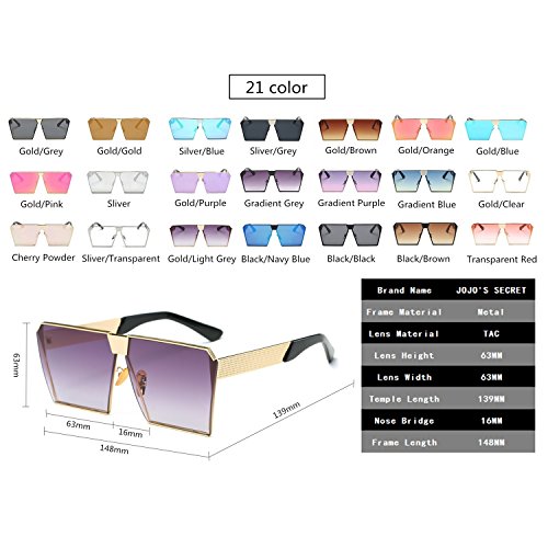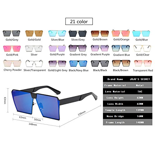 | JOJO'S SECRET Oversized Square Sunglasses Metal Frame Flat Top Sunglasses JS009 |