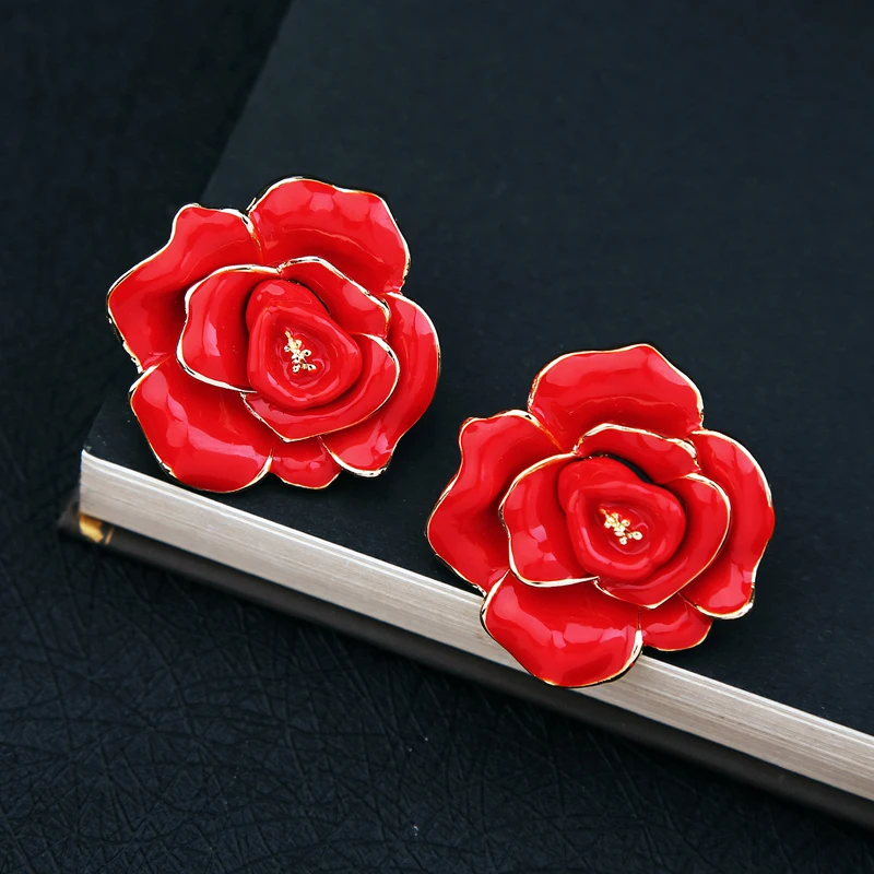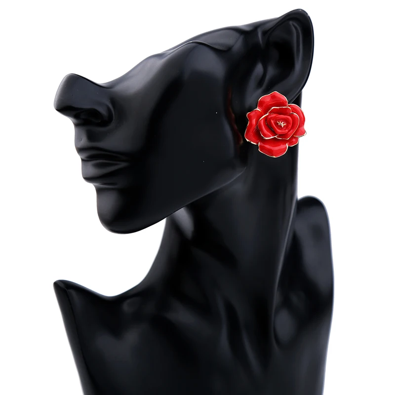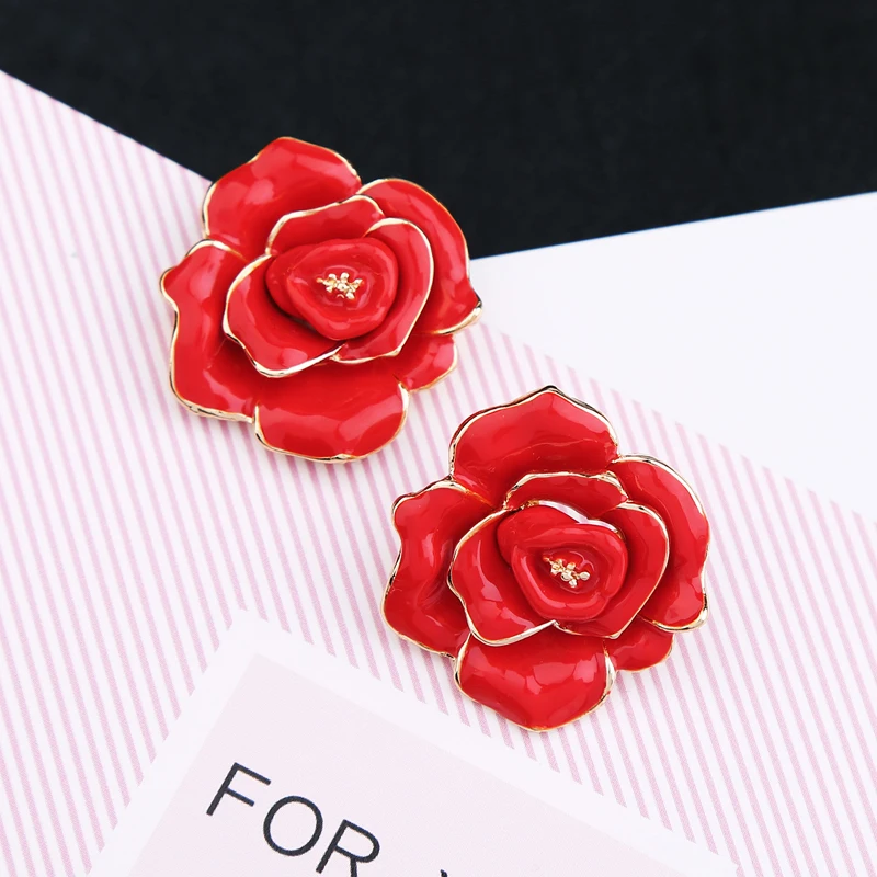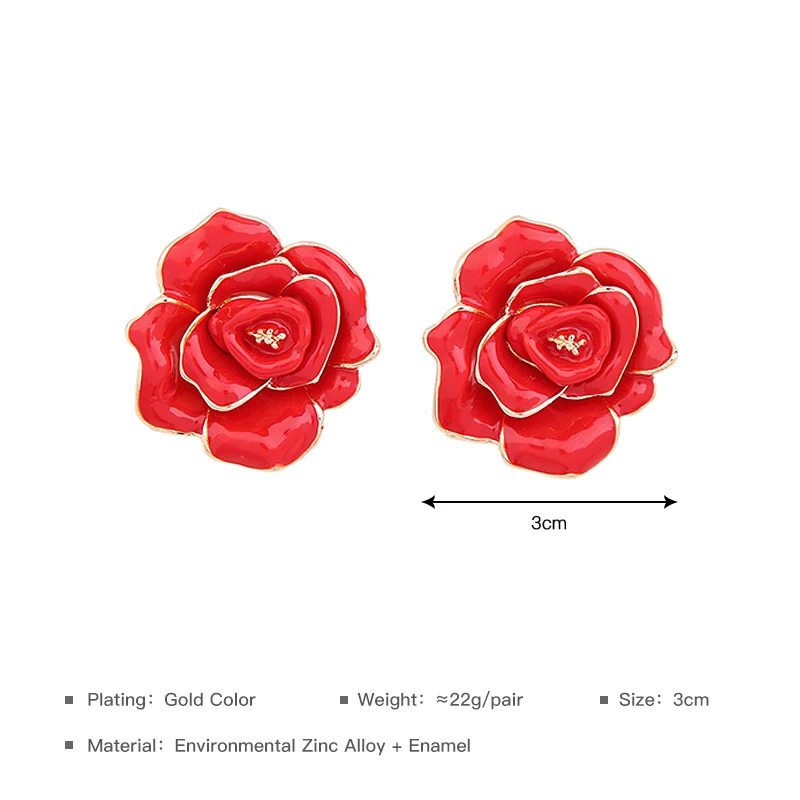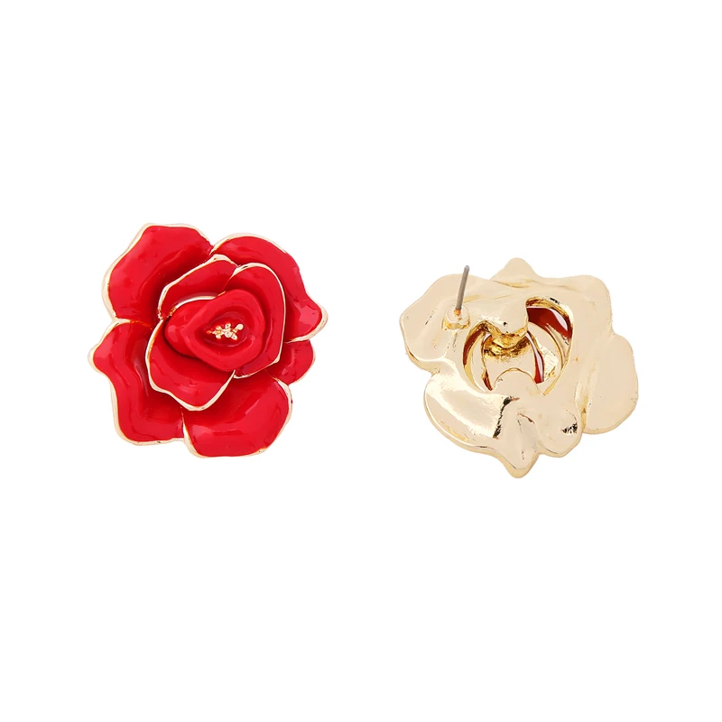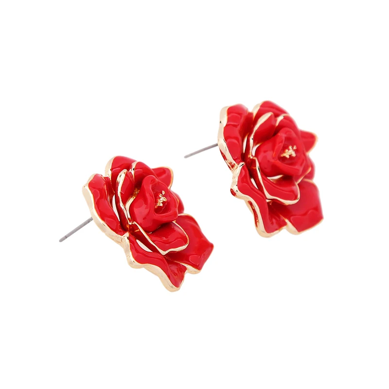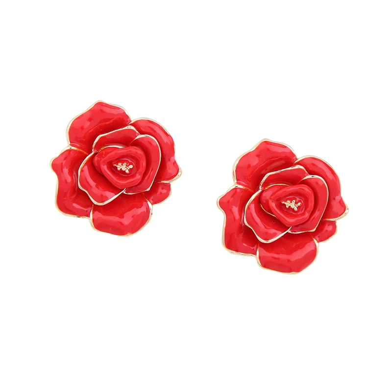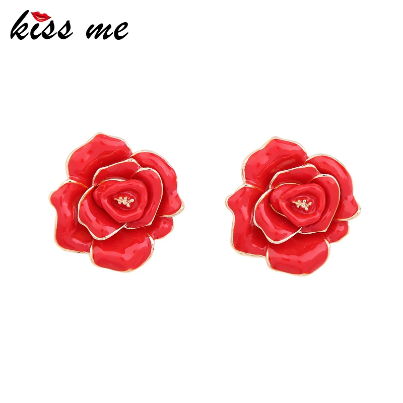 Production name ::KISS ME Cute Red Rose Flower Enamel Earrings