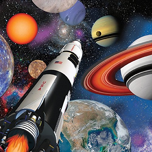 -. Title : Space Blast Party Supplies Pack for 16 Guests: Straws, Dessert Plates, Beverage Napkins, Cups, and Table Cover