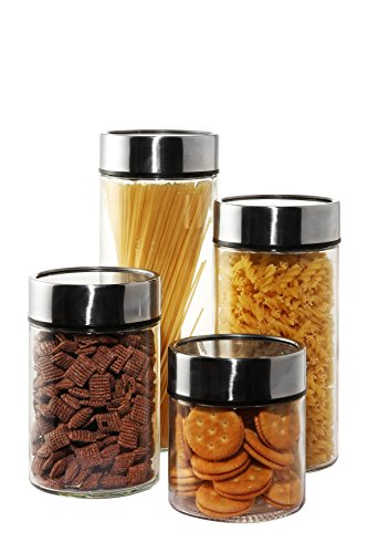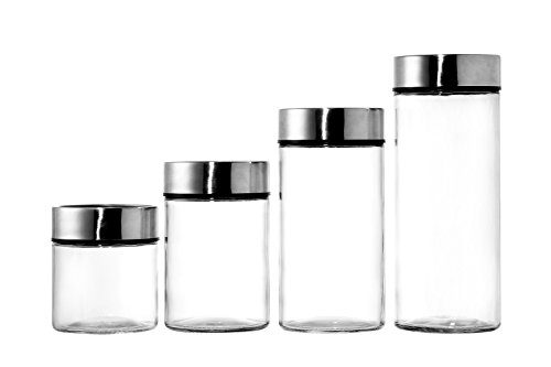 Glass Food Jar Containers with Date Dial Lids - for Dried Foods, Pasta, Herbs, Spices, & More - Airtight Lids Keeps Food Fresh - 4 Piece Set - 4.5 x 11.25, 4.5 x 9.25, 4.5 x 7, and 4.5 x 5.25 Inches