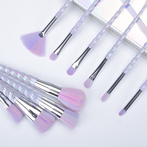 -. Feature : Quantity: Including 10 different shapes and sizes of brushes,100% brand new and high quality / The handles of the brushes are twisted like a Unicorn Horn in a very pale pearly lilac shade, unique design brush pole shape , to ensure comfortable feel and easy to use / Hair Material: Nylon Hair. Handle material: Plating, Plastic. A professional quality brush set will show your natural beauty and leave a flawless finish / Soft and silky to touch, the brushes are dense and shaped well. This attractive, charming and fashion Unicorn brushes makes you enjoy your makeup, soft and pleasing for your skin / These unicorn brushes perfect for professional use or home use, the creative possibilities are endless. 100% Money Back Guarantee if you are not satisfied