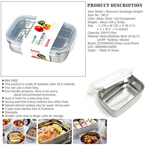 STENMOM NO.5 Stainless Steel Food Storage Containers Box Rectangle Airtight 560㎖/19oz