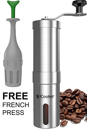 ? BONUSES - comes with a FREE coffee French press and a cleaning brush. Essentially, everything you need to grind like a pro and keep the equipment clean.