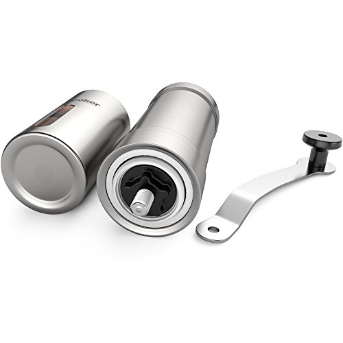 ? ELEGANT, STAINLESS LOOK - features an appealing stainless steel look. Its executive dark color easily blends with most kitchen & home decor. Grind coffee the executive way with this classy accessory!