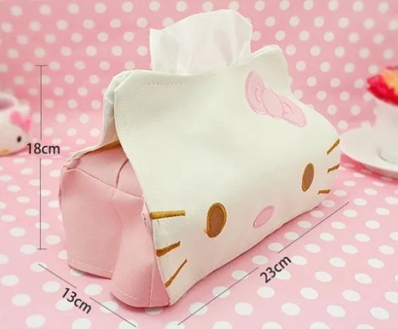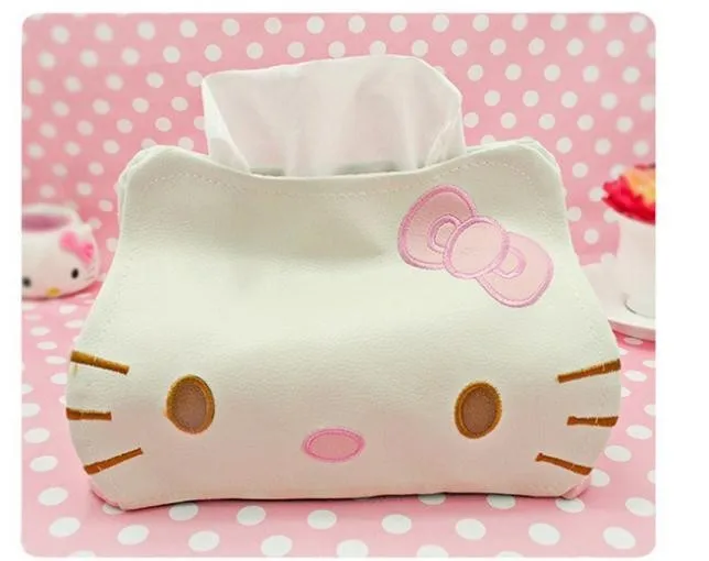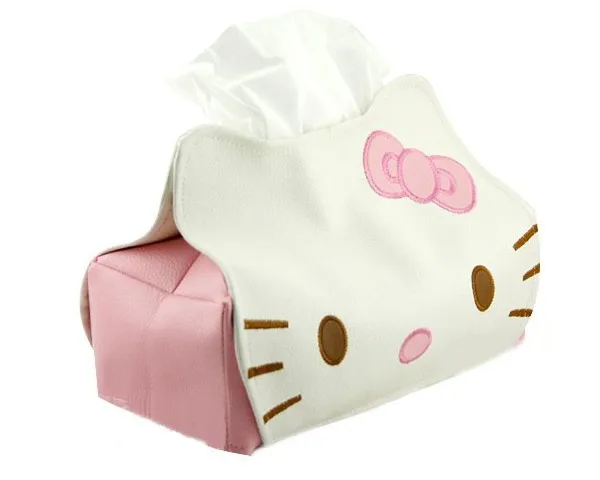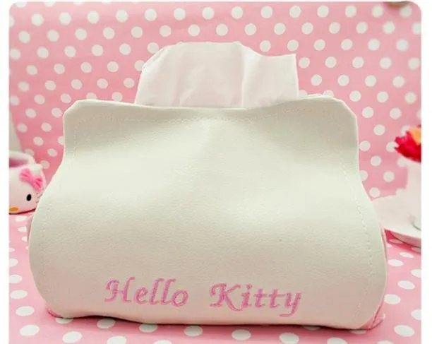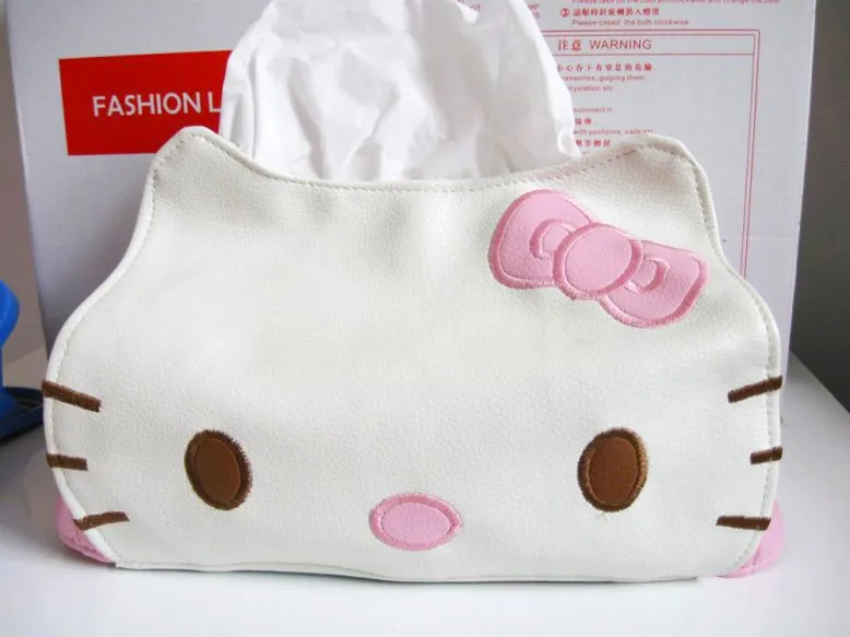 Cute Hello Kitty Tissue Box Cover , made of imported PU leather , exquisite workmanship, easy to manage . There are two bottom elastic band to fix the tissue box , the top opening for extracting tissue . Ultra super cute , at home , car, family members and guests were full of praise for the good stuff