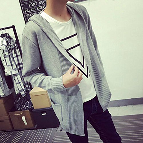 -. Title : Veroman フード付き ウール ロングニットカーディガン グレー