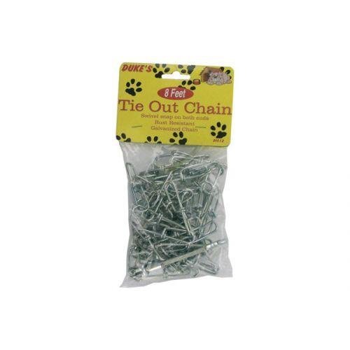 Studio : Unique Cell Distributors LLC Publisher : Unique Cell Distributors LLC Binding : Misc. Product Description Great for all kinds of dogs, this Tie-Out Chain is rust resistant and made with galvanized metal. Measures approximately 8' long. Comes packaged in a poly bag with a header card. 0
