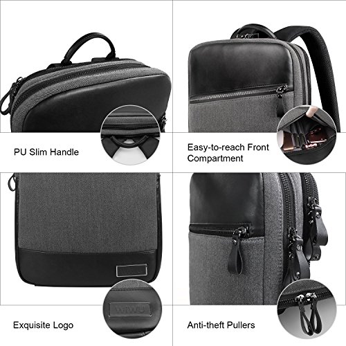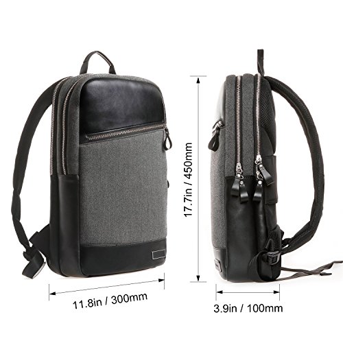-. Feature : Premium Slim Business laptop Backpacks: Selected durable and waterproof herringbone woolen fabric & soft microfiber leather & smooth Polyester oxford textile and well-padded vented air mesh back panel make the bag not only smart and fashionable, but also unique. / Ergonomic Design: This college backpack with ergonomic adjustable straps andmulti-layer cellular elastic foam, breathable and comfortable for heavy load.It's not too bulky, extra padding for support the arm provide comfort so don't dig into your shoulders. / Large Capacity: WIWU laptop backpack fits up to 15.6" laptop.Internal size: 16.53"(L) X 11.02"(W) X 3.15"(H); External size: 16.92"(L) X 12.99"(W) X 3.54"(H).This business laptop backpack with separate laptop compartment behind the back strap don't use internal storage space for up to 15.6inch computer.Large compartment design is perfect for student or business travel or weekend getaways. / Anti-theft zipper:-Patented dual-access new invisible zipper for Every compartment with resistant material makes Triple protection to your valuable stuffs,especially the laptop. / Watefproof Design:This computer backpack is made of durable terylene fabric, smooth, flexible and portable, portable and easy to clean. You can take this notebook backpack to school, college, shopping, cycling, travel etc.