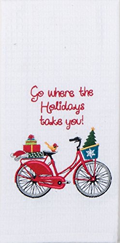 Kay Dee Designs Go Where the Holidays Take You Red Bike Embroidered Waffle Towel