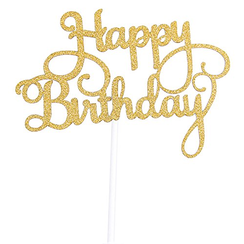Cake Topper Happy Birthday Gold Glitter 300g Paper Laser Cut Cupcake Highest Quality Party Decoration