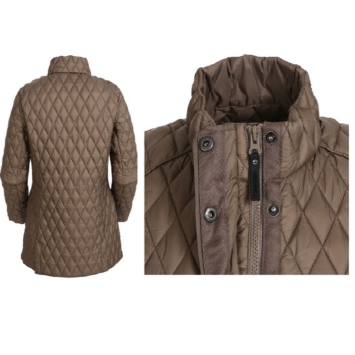 춘절 여성 사파리형 캐쥬얼 패딩자켓. 캐쥬얼 터치의 소재를 접목한 라이프 스타일형 패딩 자켓으로 어깨 파이핑 디테일 및 와펜을 적용하고 뒷트임을 주어 캐쥬얼 느낌을 살림. 웰론 충전재를 넣어 보온성을 높인 사파리형 패딩 자켓.