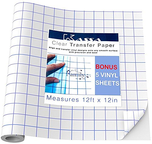 Kassa Clear Transfer Paper Tape for Vinyl (12 Ft x 12 in Roll) Apply Permanent or Glitter Vinyl Easily - Aligns Perfectly with Cricut or Silhouette Cameo - FREE 5 Black Vinyl Sheets