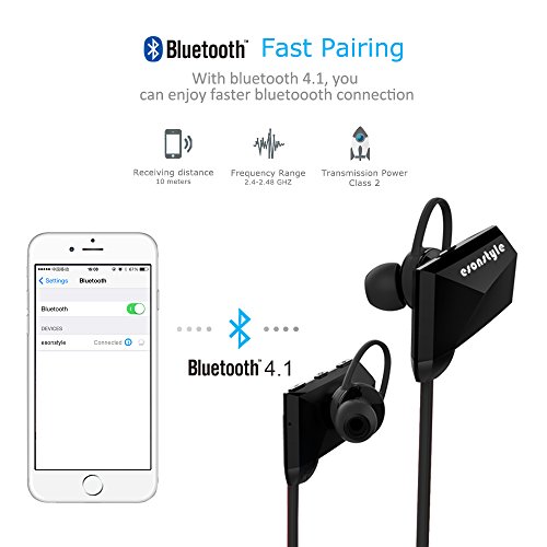 - Comfortable and Secure Fit: With Ergonomic design ,esonstyle Bluetooth Headphone provide you secure and comfortably. It is great for Gym, Running, Hiking and etc.1 pair earhook and 3 pair Silicone ear cap(S/M/L) can fit for different ear size.