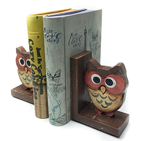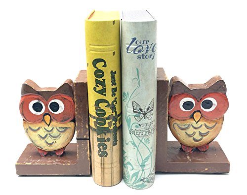 Bali Wooden Wide Eyed Owl Bookends Pair - Home Decoration Nice Book Ends