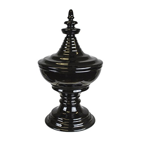 Benzara Gorgeously Designed Round Ceramic Covered Jar, Black