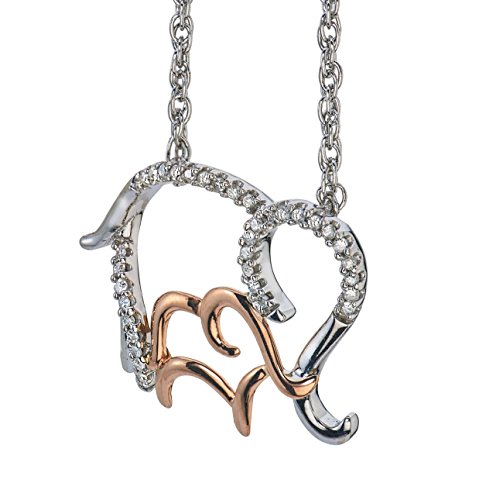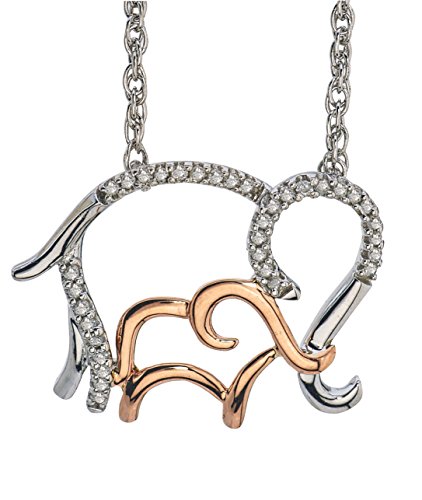 This cute necklace for her features a pair of elephants- one fashioned in sterling silver with diamonds and the other in 14K rose gold. Totaling 1/10 carat in diamond weight, the elephant family pendant suspends from an 18-inch rope chain that secures with a lobster clasp. Diamond Total Carat Weight 0.10 carats.Feature