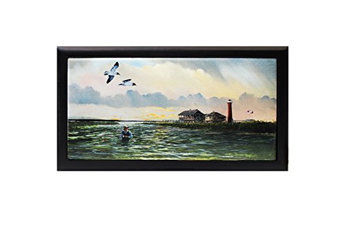 Ceramic Tile Lighthouse & Angler, Wooden Box 8-3/4"x5"x2-3/4"H, 39219 BY ACK